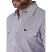 Wrangler Men's Cowboy Cut Work Short Sleeve Western Snap Solid Shirt - Chambray