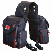 These compact, lightweight, and exceptionally durable TrailMax saddlebags are the ultimate in functionality and design. The main compartment on each side is just large enough for a lunch, first aid kit, or extra layer of clothing. Compression straps can be used for securing rain gear or our matching TrailMax 500 Series Saddle Cantle Pocket (sold separately). A zippered pocket on each side allows easy access to a cell phone or small camera. The front pocket is ideal for a trail guide book or map, with a mesh pouch to keep smaller items contained. Finally, the pocket inside each flap keeps small essentials such as cash, keys and photo ID easily accessible.