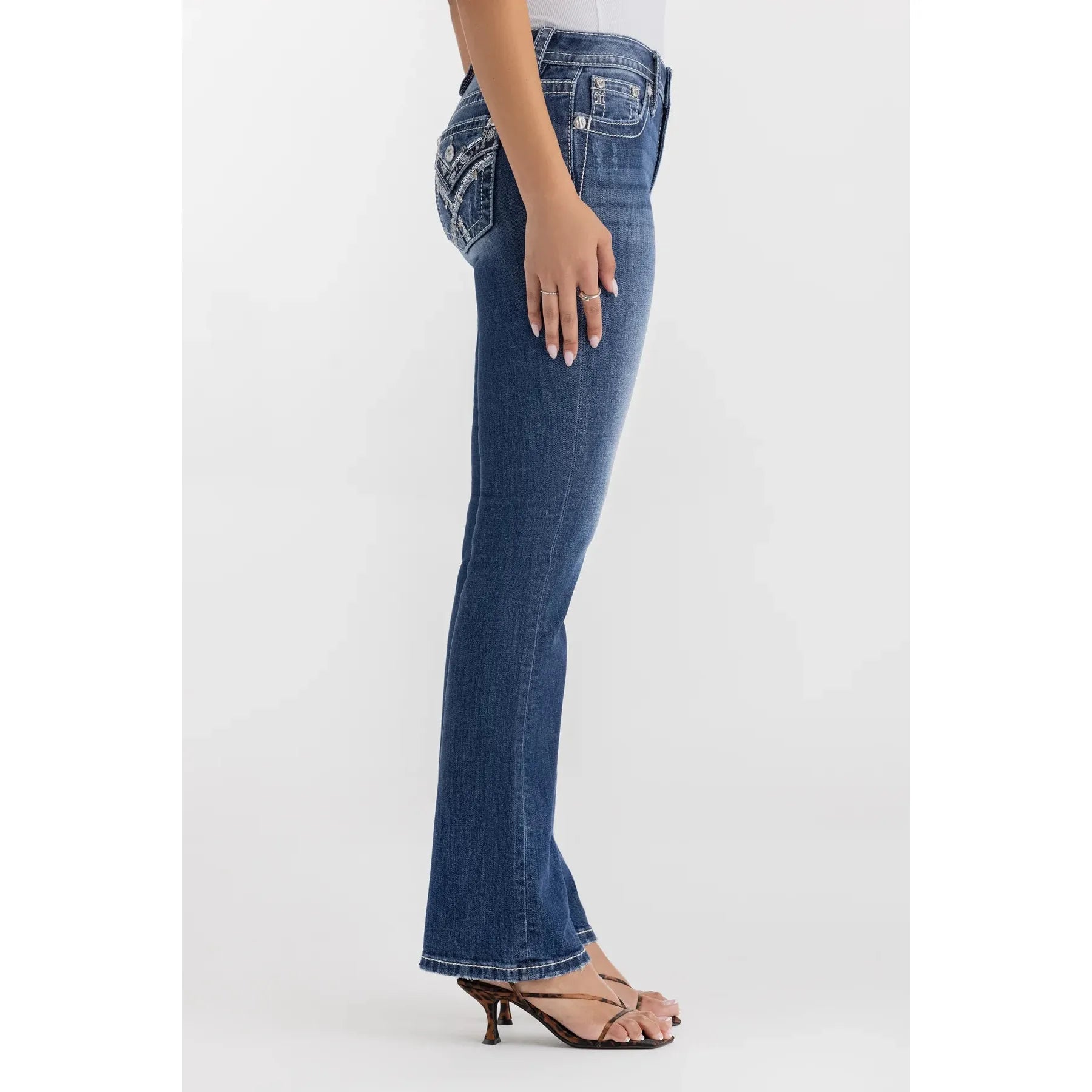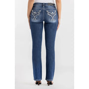 Miss Me Women's Mid Rise Crissy Skye Boot Cut Jeans- Dark Wash