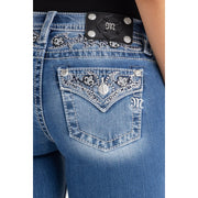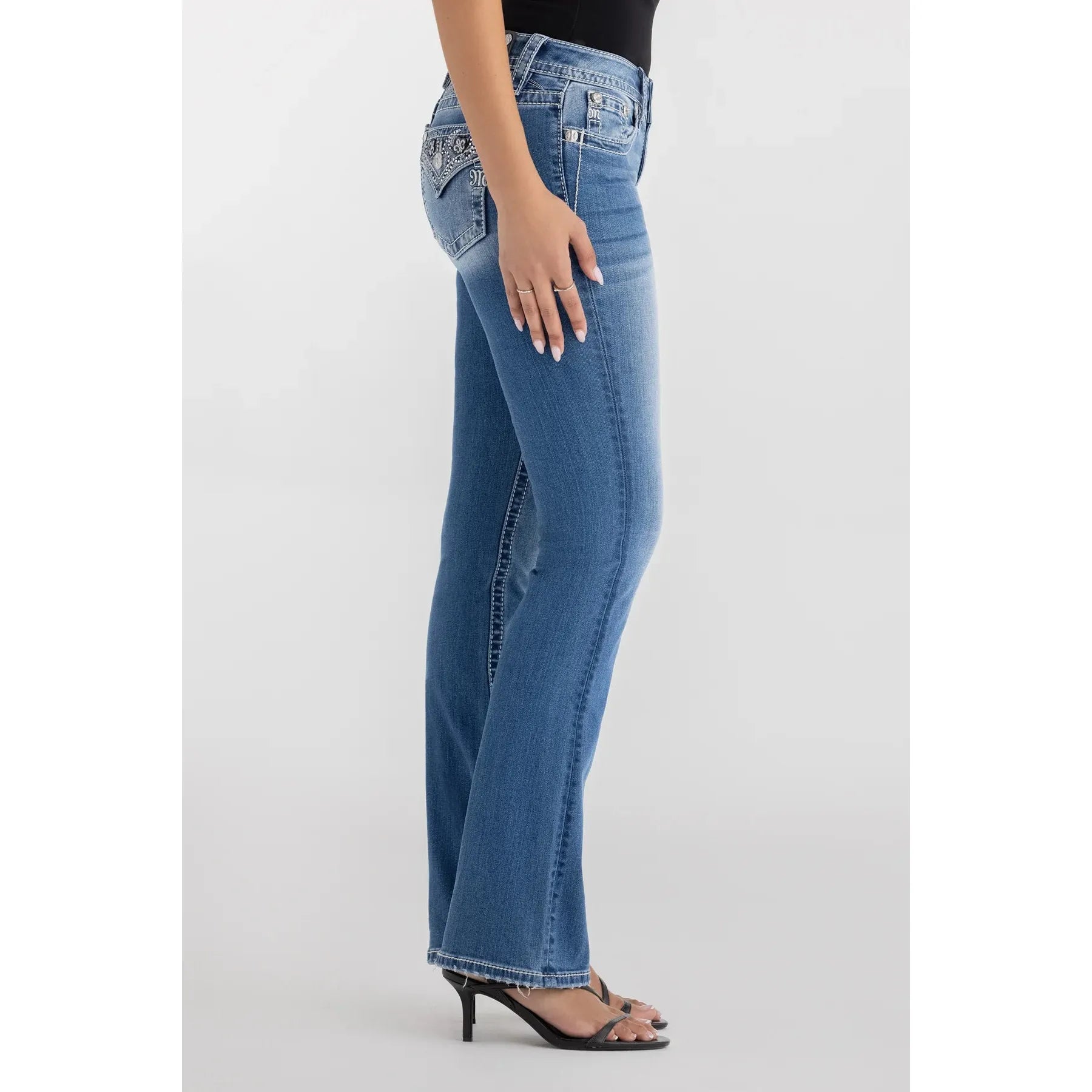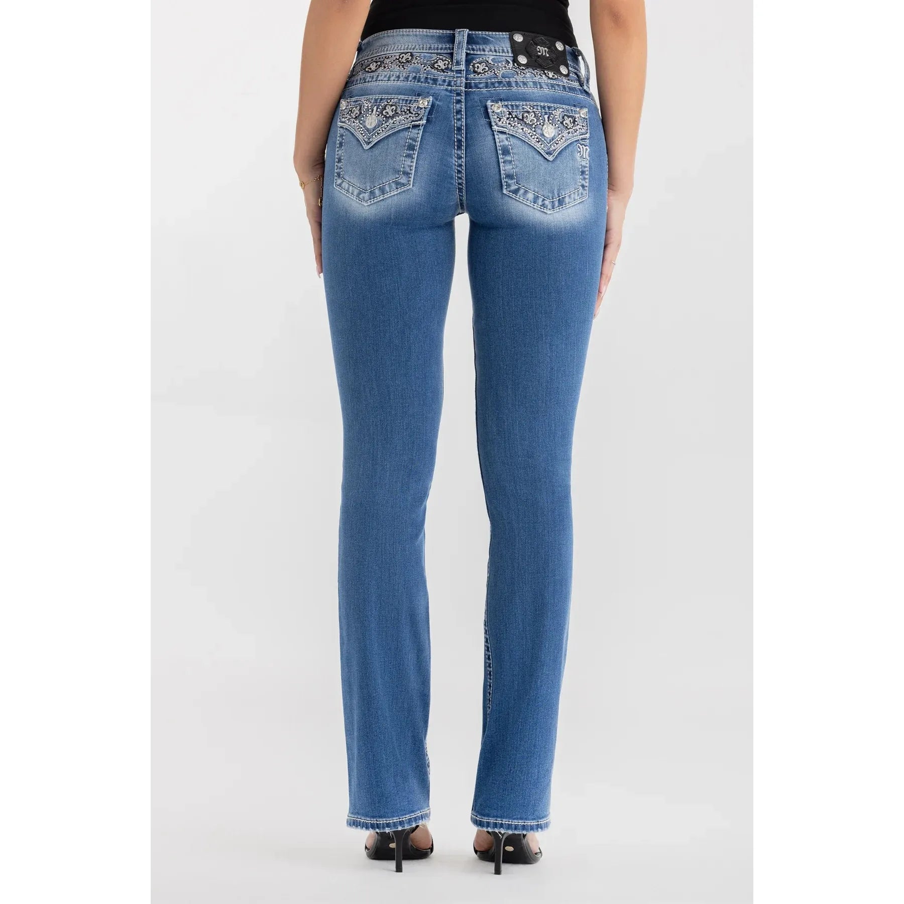 Miss Me Women's Mid Rise Solene Fleur Boot Cut Jeans- Medium Wash