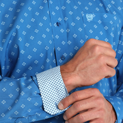 Cinch Classic Fit Long Sleeve Men's Cotton Print Shirt - Royal Blue