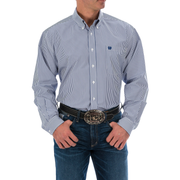 Cinch Men's Classic Fit Tencel Stripe Button-Down Long Sleeve Shirt - Royal Blue