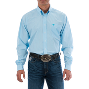 Cinch Men's Classic Fit Micro-Stripe Button-Down Long Sleeve Shirt - Light Blue