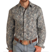 Panhandle Men's Long Sleeve Paisley Slim Shirt- Tan