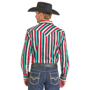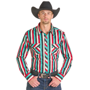 Rock & Roll Men's Long Sleeve Stripe Printed Twill Snap Shirt -Black/Red/White/Teal