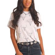 Rock & Roll Unisex Longhorn All Over Printed Short Sleeve Tee Shirt-White