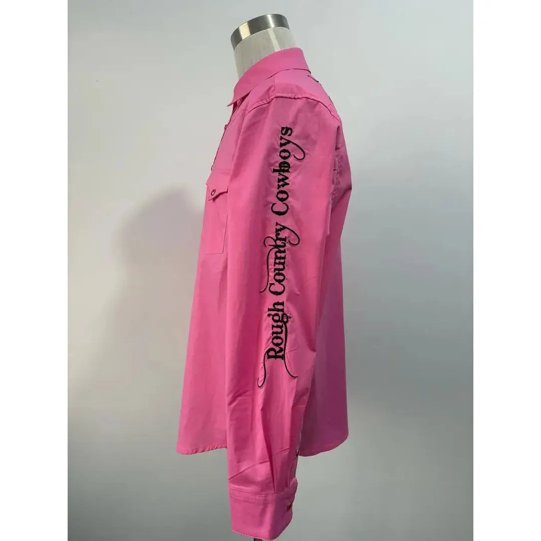 Rough Country Cowboys Men's Long Sleeve Snap Western Shirt- Pink