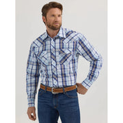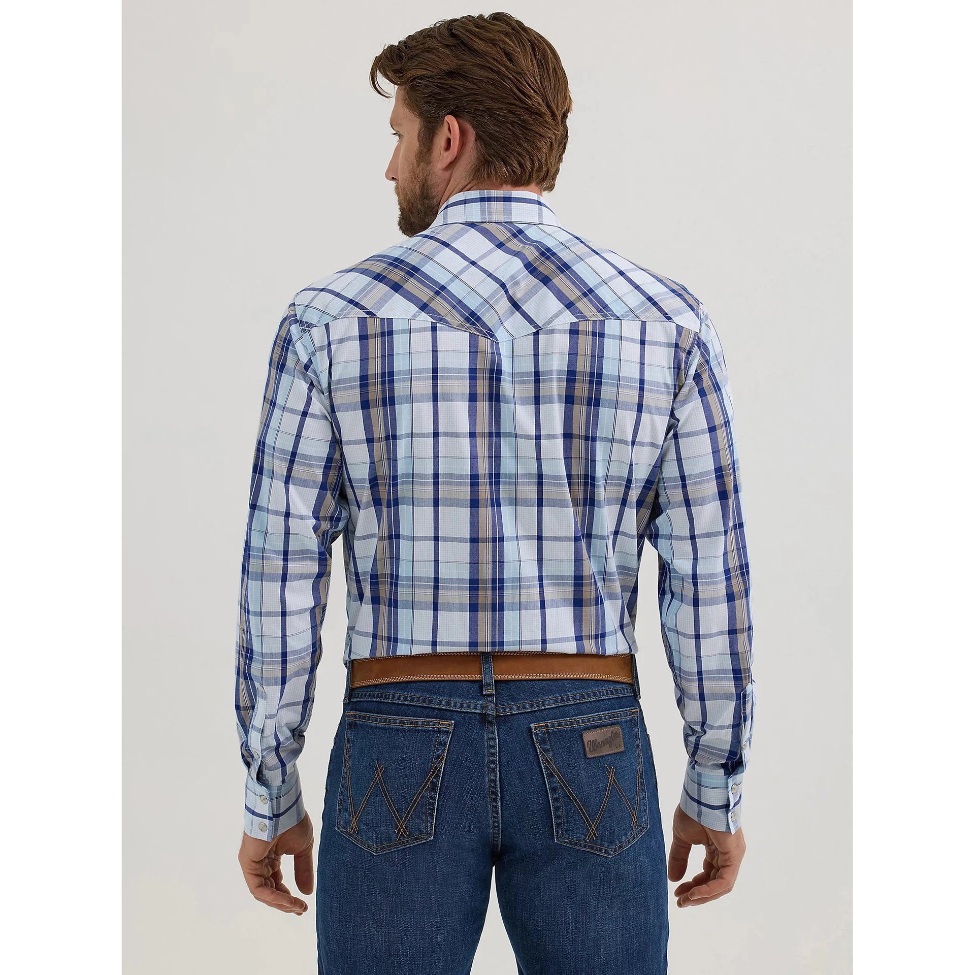 Wrangler Men's 20X Competition Advanced Comfort Long Sleeve Classic Fit Shirt - Lake Blue Plaid