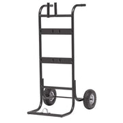 Featuring 10" no-flat, polyurethane foamfilled tires and durable, powder-coated steel construction, this blower cart is built to outperform the competition. The tires feature rugged treads that easily roll through mulch and other types of bedding. The sleek, rounded steel tubing with powder-coated finish resists chips and scratches. Rounded handles feel great in the hands for comfortable movement.