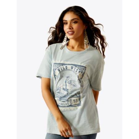 Ariat Women's Wild West Stamp Tee Shirt- Bleached Blue