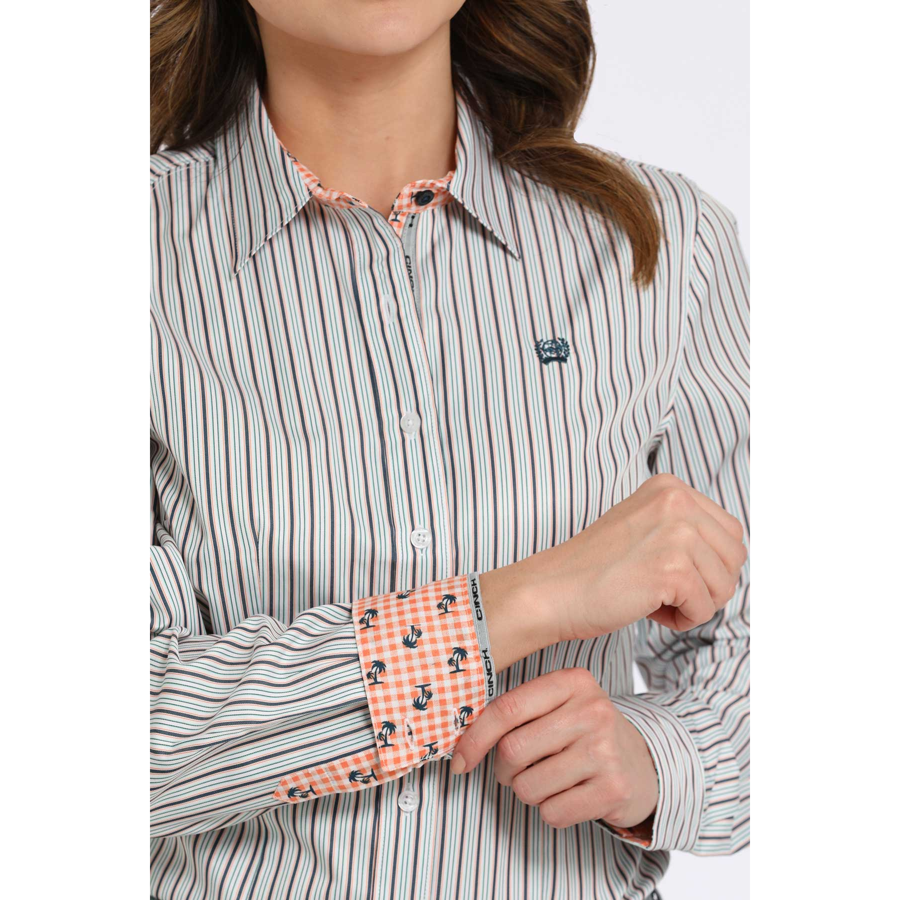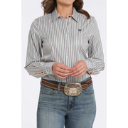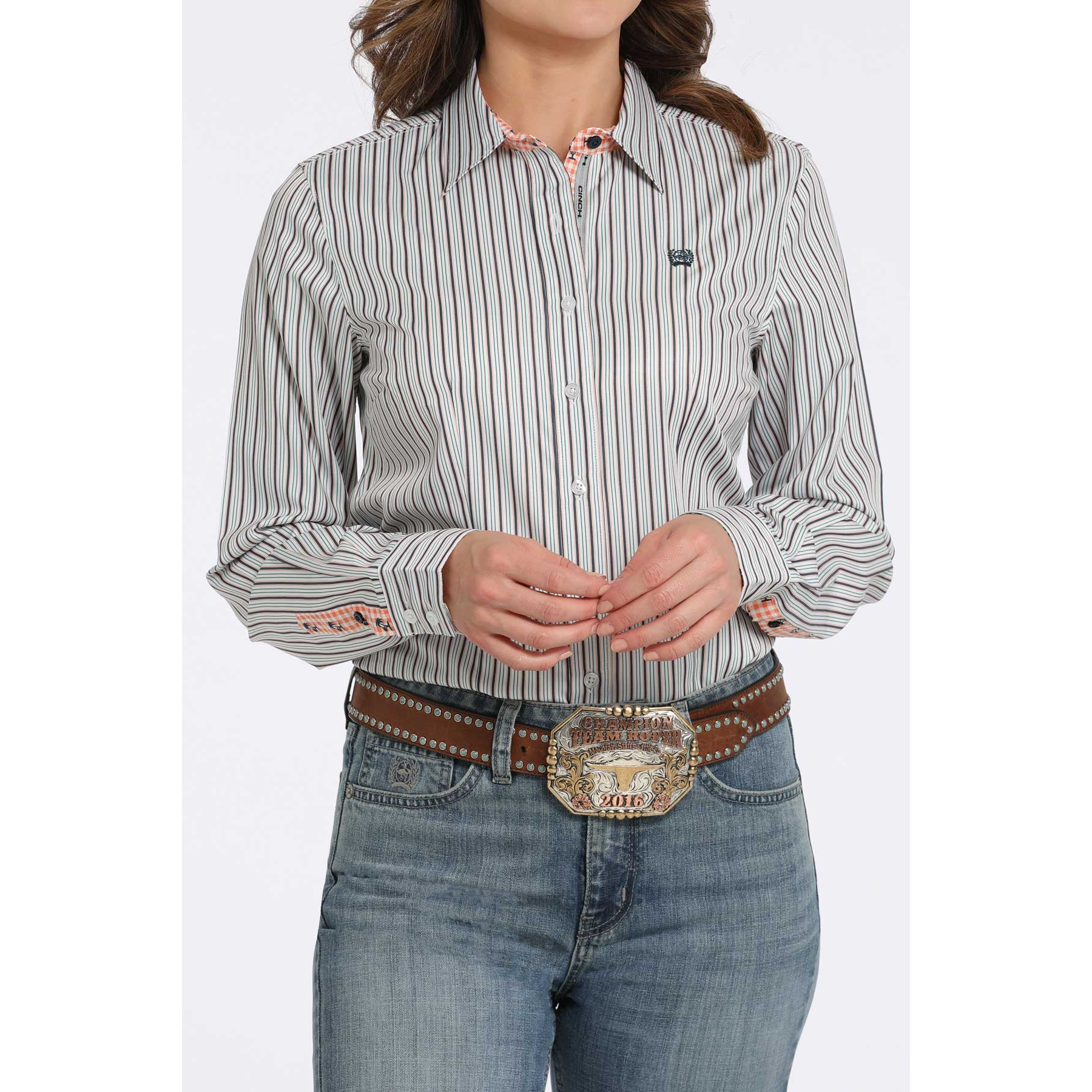 Cinch Women's Long Sleeve Stripe Shirt- White