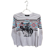 Lucky & Blessed Women's Aztec Kicking Horse Printed Top-Light Grey