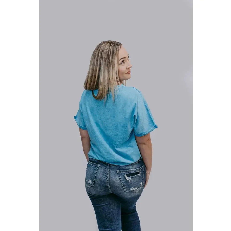Merigold Kiss Women's Short Sleeve Star Acid Wash Crop Tee Shirt