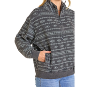 Rock & Roll Women's Aztec Print 1/4 Zip Pullover - Black