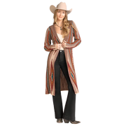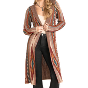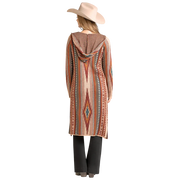 Rock & Roll Women's Aztec Sweater Cardigan Hooded Knit Duster - Brown