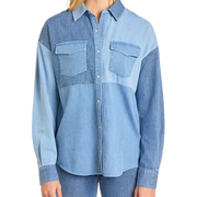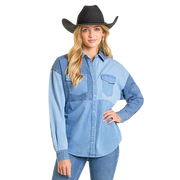 Rock & Roll Women's Denim Patch Long Sleeve Shirt - Blue