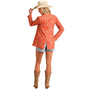 Rock & Roll Women's Long Sleeve Horse Print Blazer- Burnt Orange