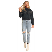 Rock & Roll Women's Long Sleeve Pullover with Studded Fringe - Assorted Colours