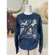Rockin A Design Women's Long Sleeve Western Icons Sweatshirt- Heather Denim