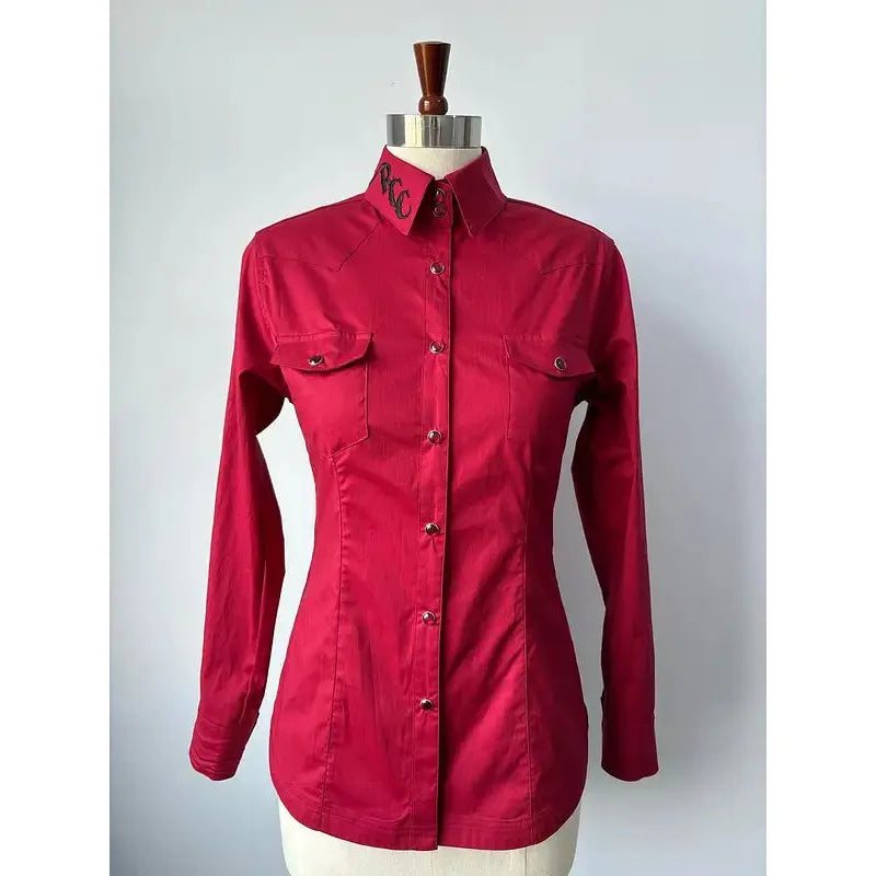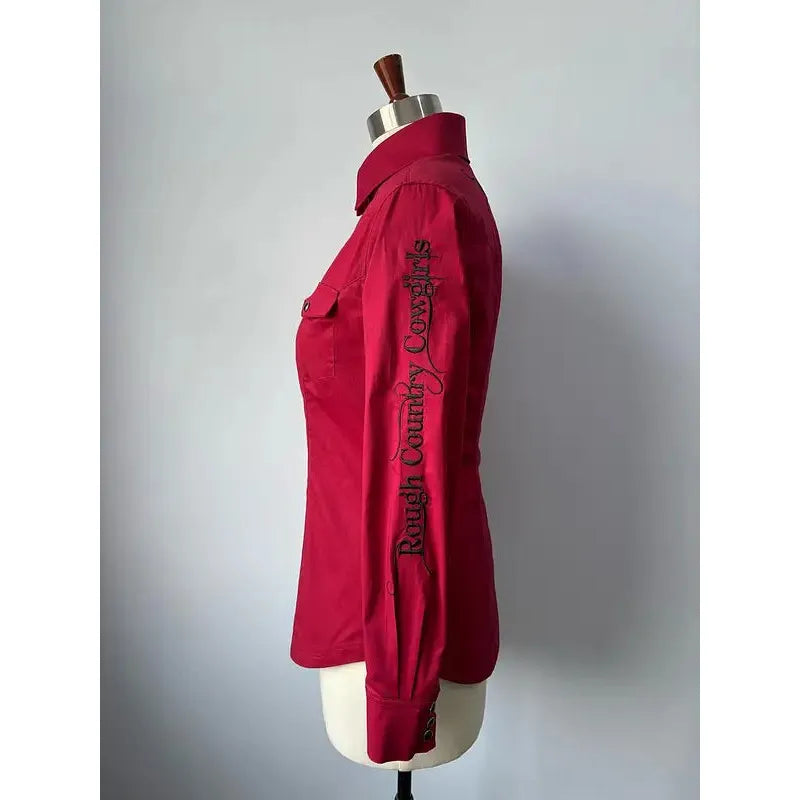 Rough Country Cowboys Ladies Long Sleeve Snap Western Shirt- Red