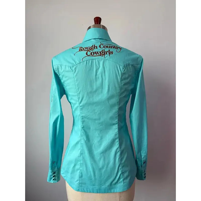 Rough Country Cowboys Ladies Long Sleeve Snap Western Shirt-Teal