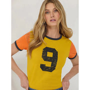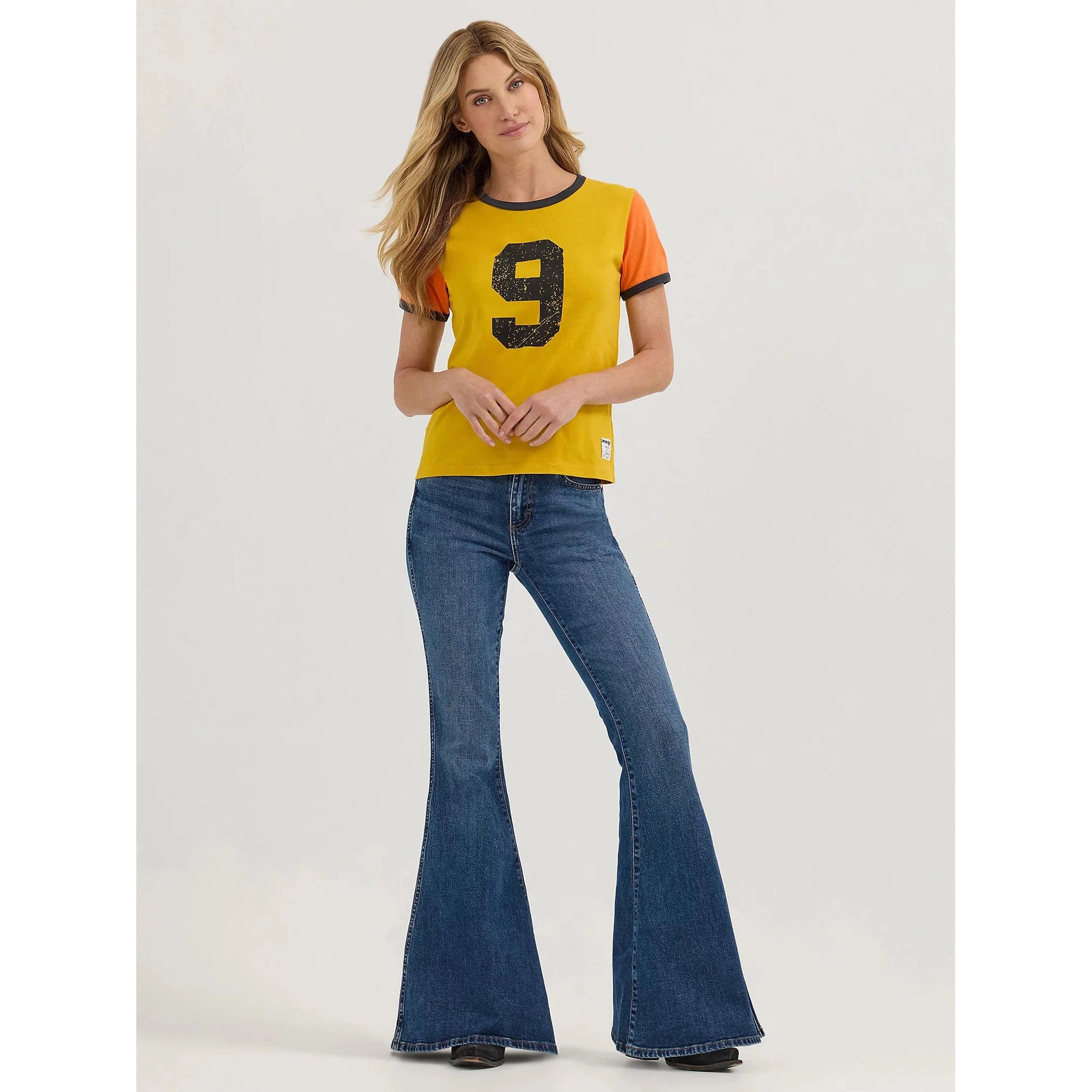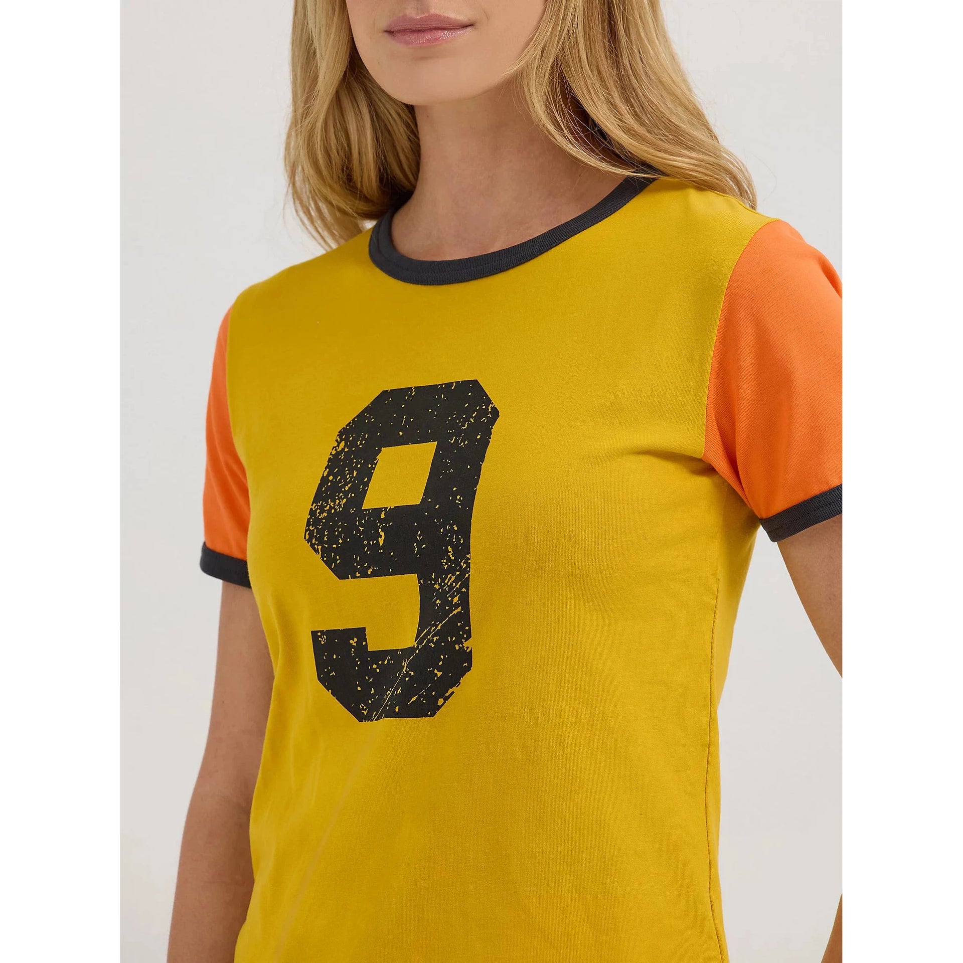 Wrangler Lainey Wilson Number 9 Slim Ringer Short Sleeve Tee Shirt-Nugget Gold