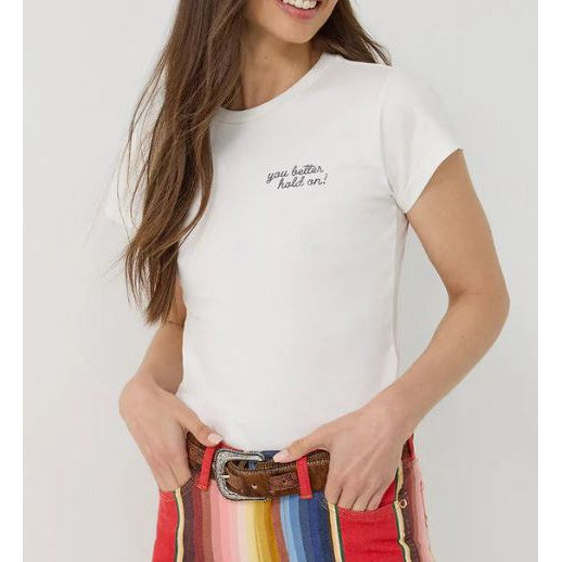 Wrangler Lainey Wilson You Better Hold On Shrunken Band Short Sleeve Tee Shirt- White
