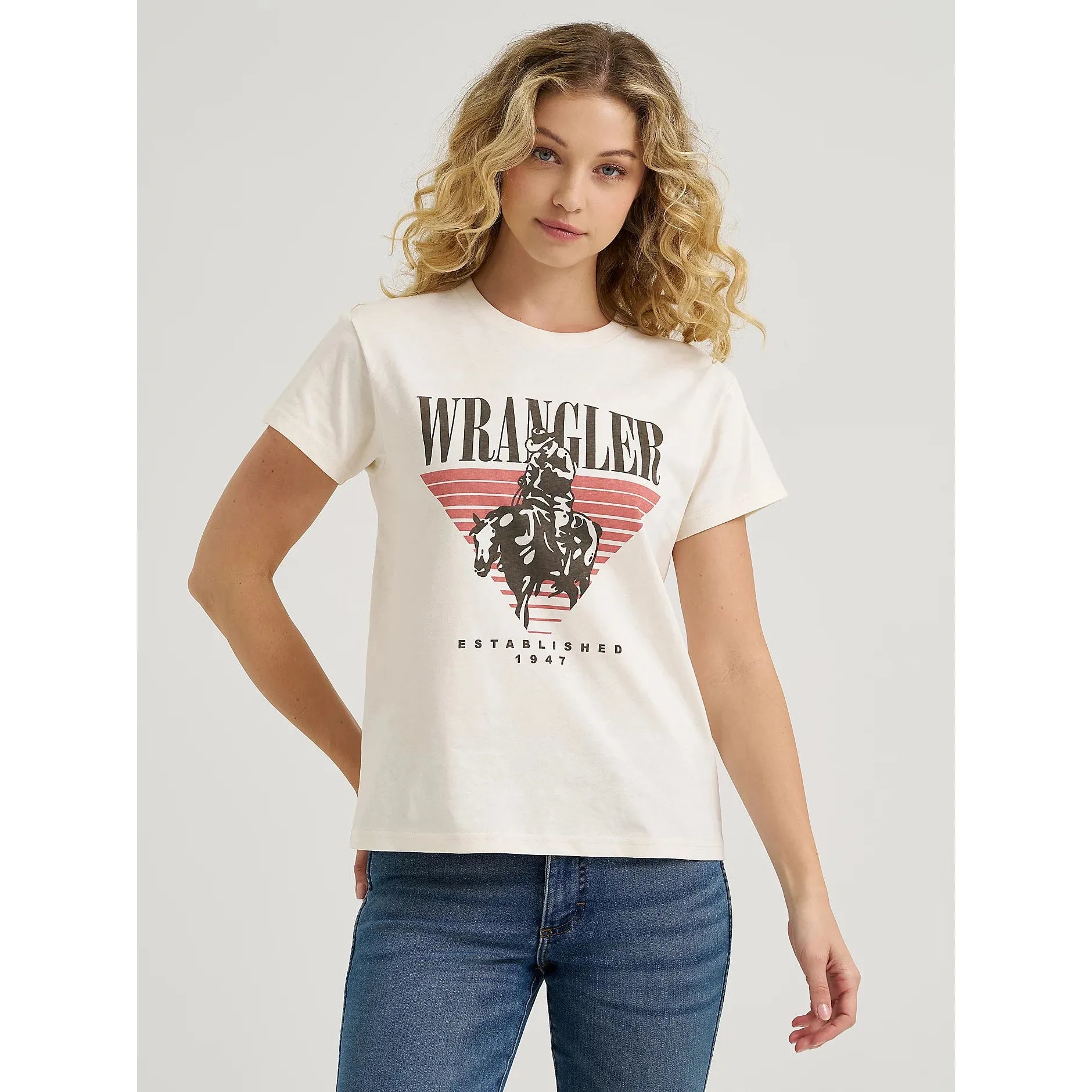 Wrangler Women's Graphic Retro Short Sleeve Tee Shirt- Whisper White
