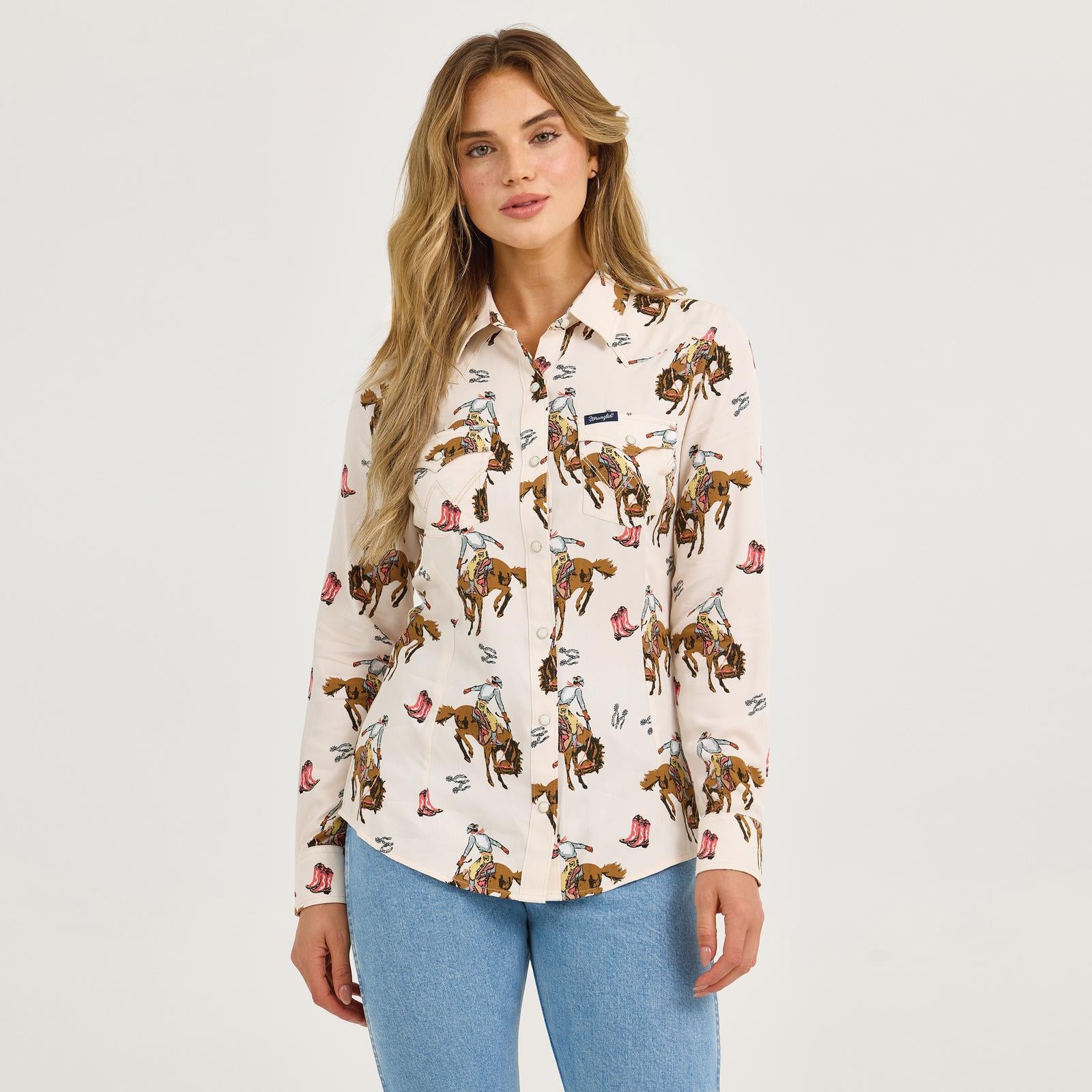 Wrangler Women's Long Sleeve Retro Punchy Shirt- Cream