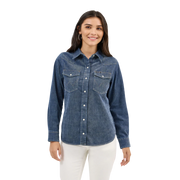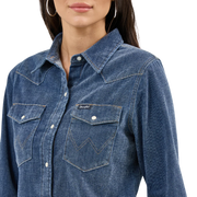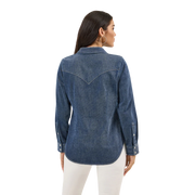 Wrangler Women's Retro Party Vintage Long Sleeve Denim Shirt - Denim Blue