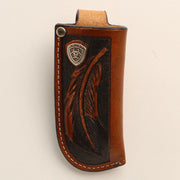 - Carry your favorite knife with you every day with this Ariat knife sheath by M&F Western Products. The sheath is a quality tan leather with a large tan and brown feather embossed on the front, and a silver Ariat concho. Fits up to a 1-1/2" wide belt. Designed for pocket knives.