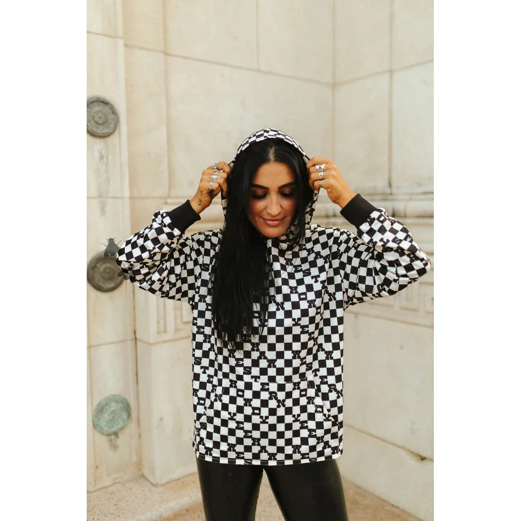 2 Fly Women's Square Dance Long Sleeve Hoodie - Black/White