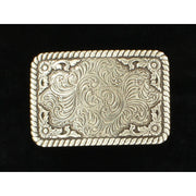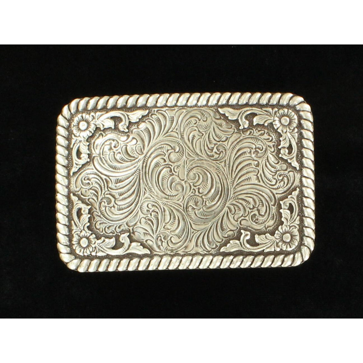 Nocona Unisex Rectangle Engraved Rope Edge w/Floral Scroll Buckle - Silver