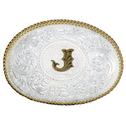 Montana Silversmiths Initial J Silver Engraved Gold Trim Western Belt Buckle