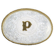 Montana Silversmiths Initial P Silver Engraved Gold Trim Western Belt Buckle