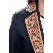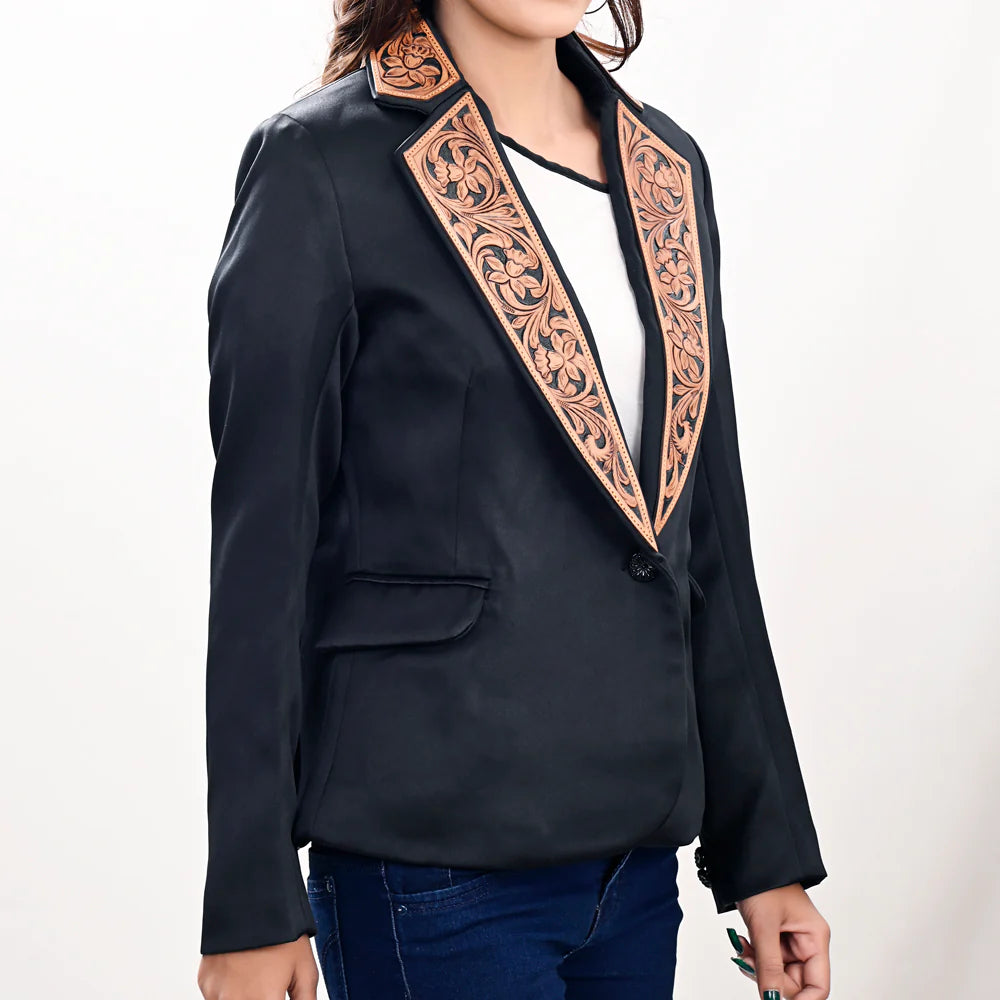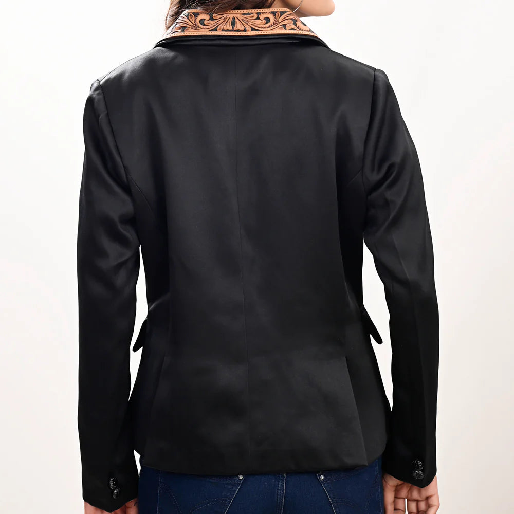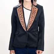 American Darling Women's Blazer w/Leather Lapels - Black w/Tan & Black Inlay