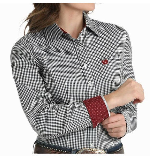 Cinch Women's Long Sleeve Plaid Shirt - Black & White