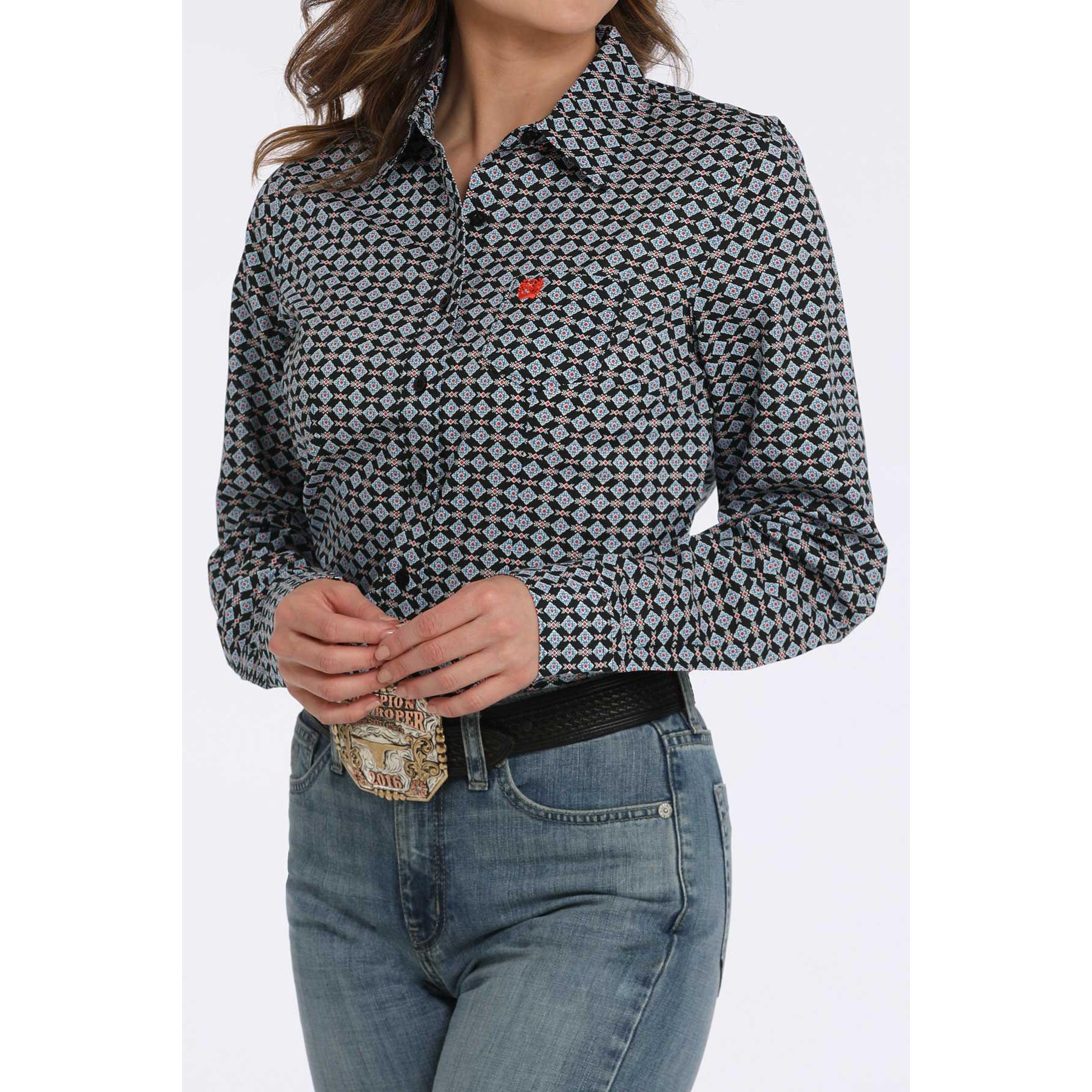 Cinch Women's Long Sleeve Print Shirt 725- Black