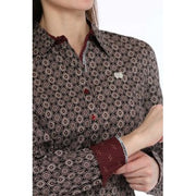 Cinch Women's Medallion Print Button Down Long Sleeve Shirt - Black