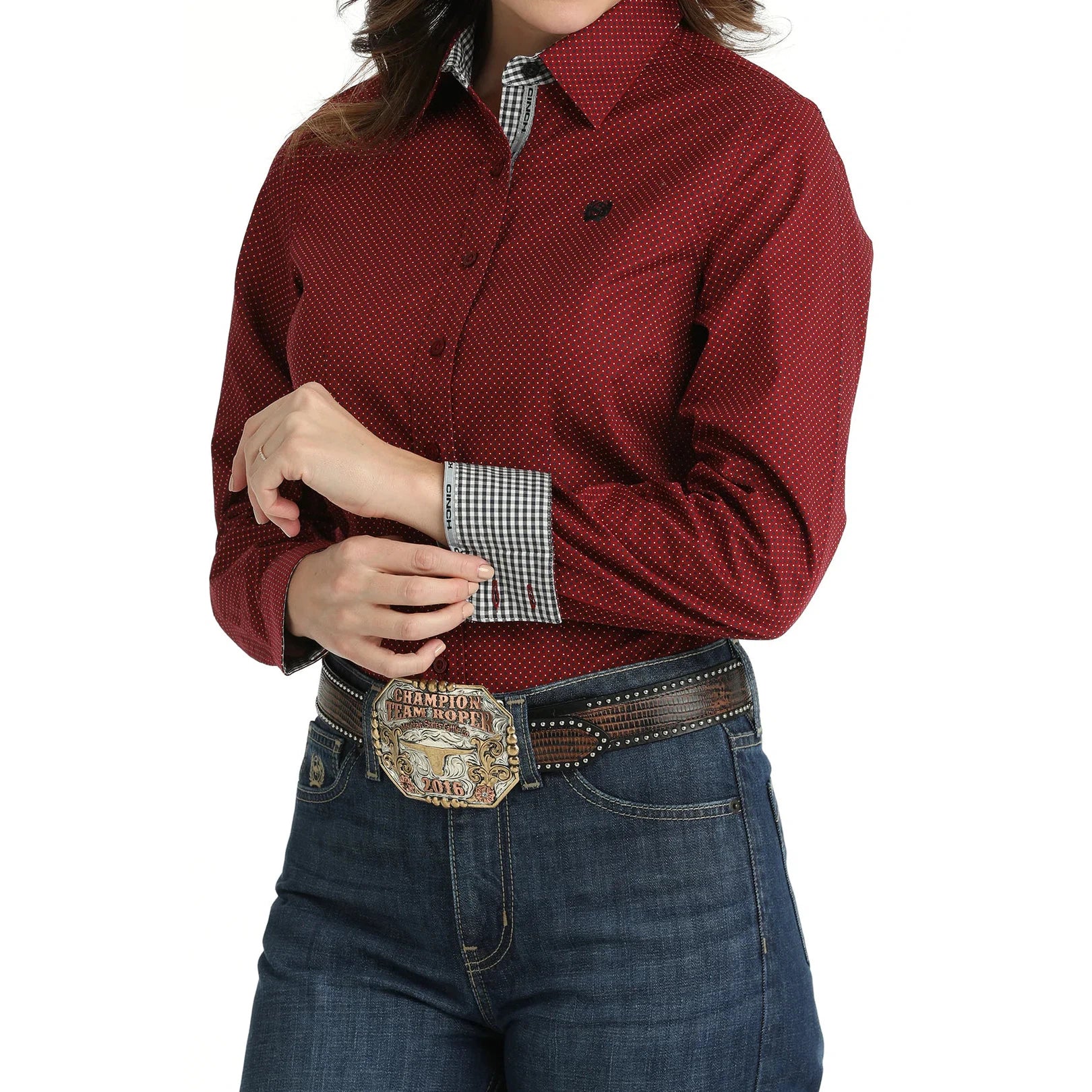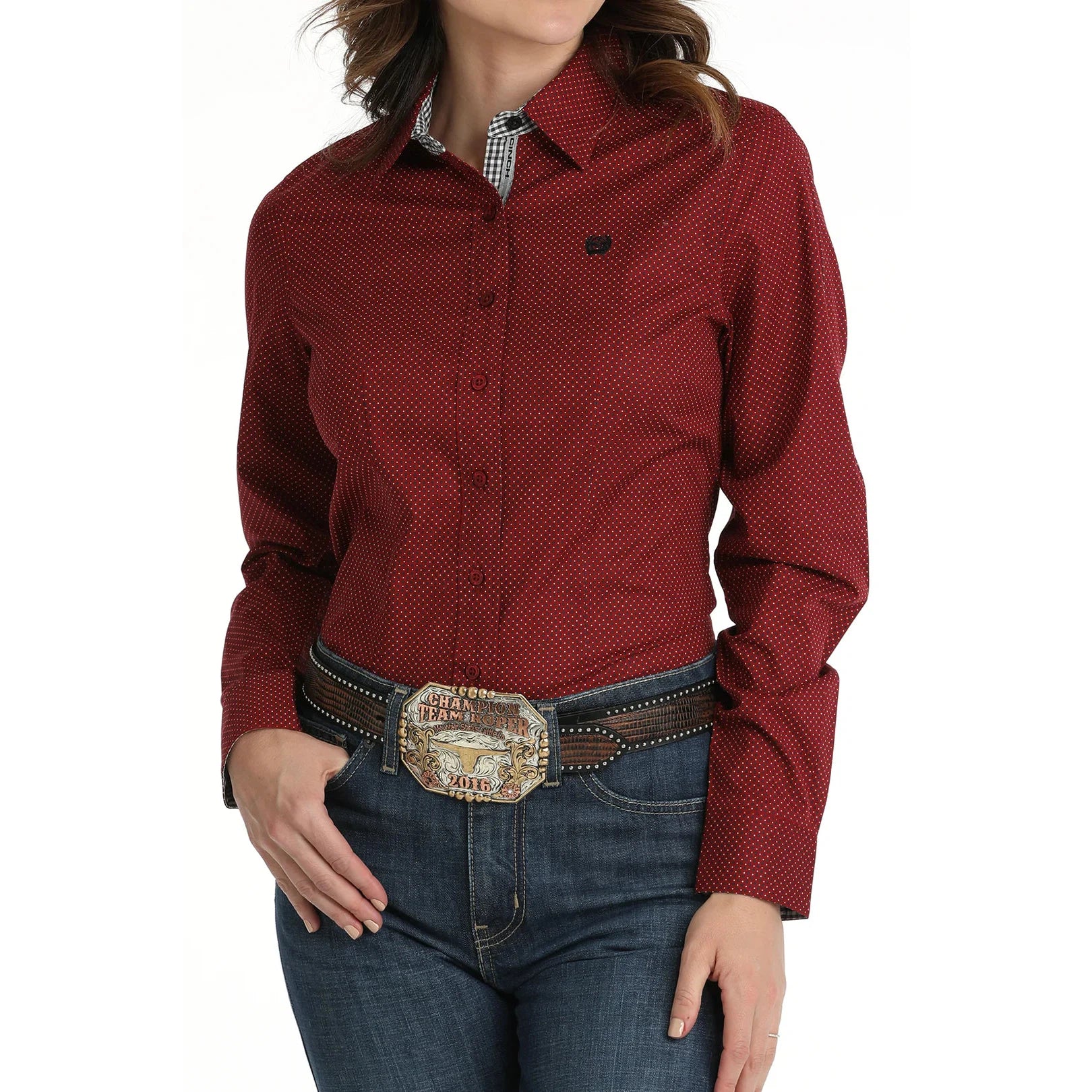 Cinch Women's Long Sleeve Polka Dot Western Shirt- Red