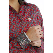 • This red printed cotton plain weave features all the wow a classic button down can provide with eye-catching medallions and contrasting paisley trim