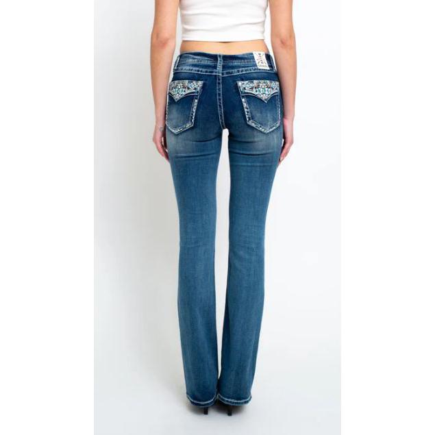 Grace in LA Women's Aztec Embroidered Pocket Flap Midrise Bootcut Jean