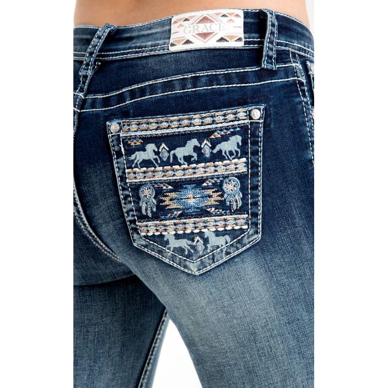 Grace in LA Women's Horse Embellished Mid Rise Skinny Jeans