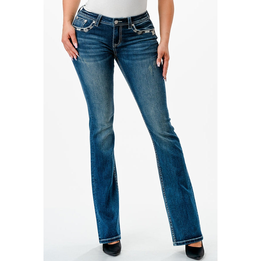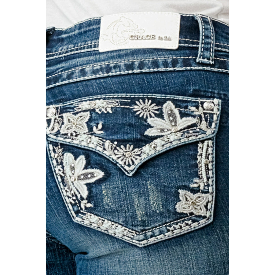 Grace In LA Women's Easy Bootcut Jeans - Floral Faux Flap