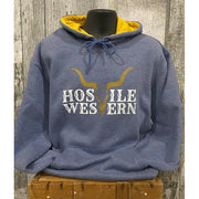 Hostile Western Unisex Long Sleeve Hoodie- Blue/Yellow