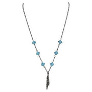 - Cable chain w/square faux turquoise stone and feathers