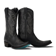 A neutral cowgirl boot right off the runway. Jet Black Sandaga cowgirl boots are a new closet staple.