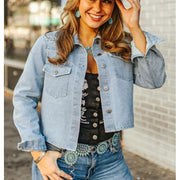 Lucky & Blessed Women's Boot Stitch Embroidery Concho Button Down Jacket- Denim