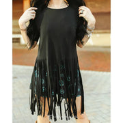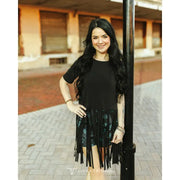 Lucky & Blessed Women's Fringe Hem Short Sleeve Top- Black