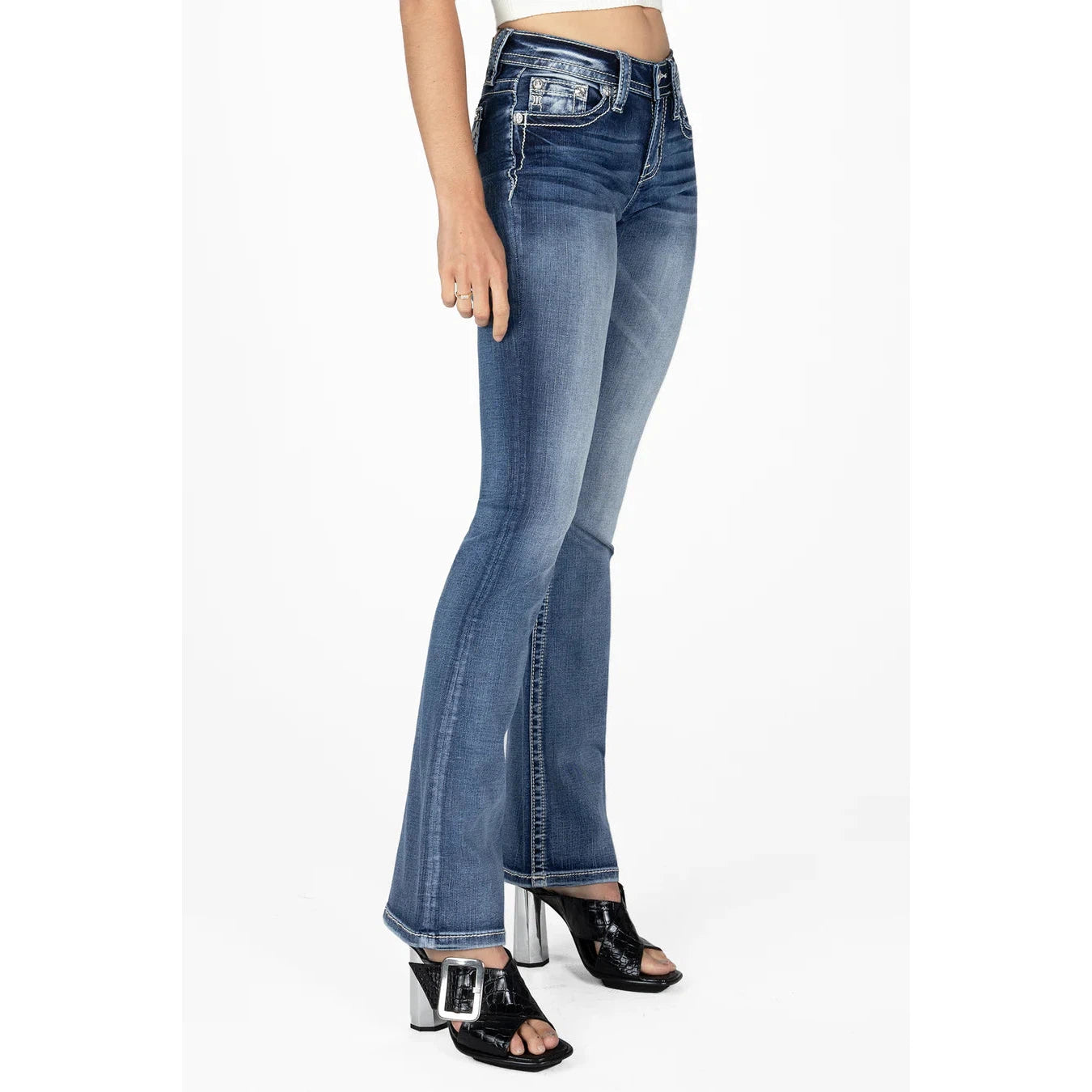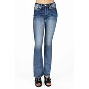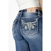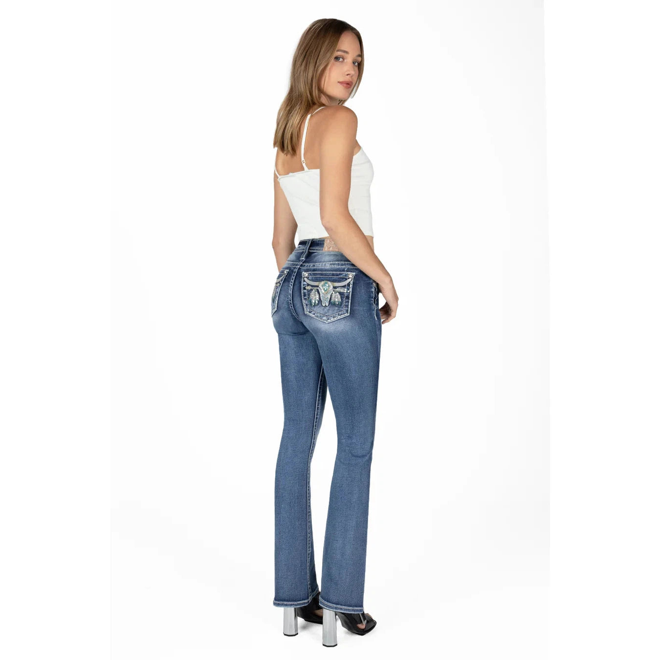 Miss Me Turquoise Aztec Longhorn Mid Rise Bootcut Jeans - Medium Wash